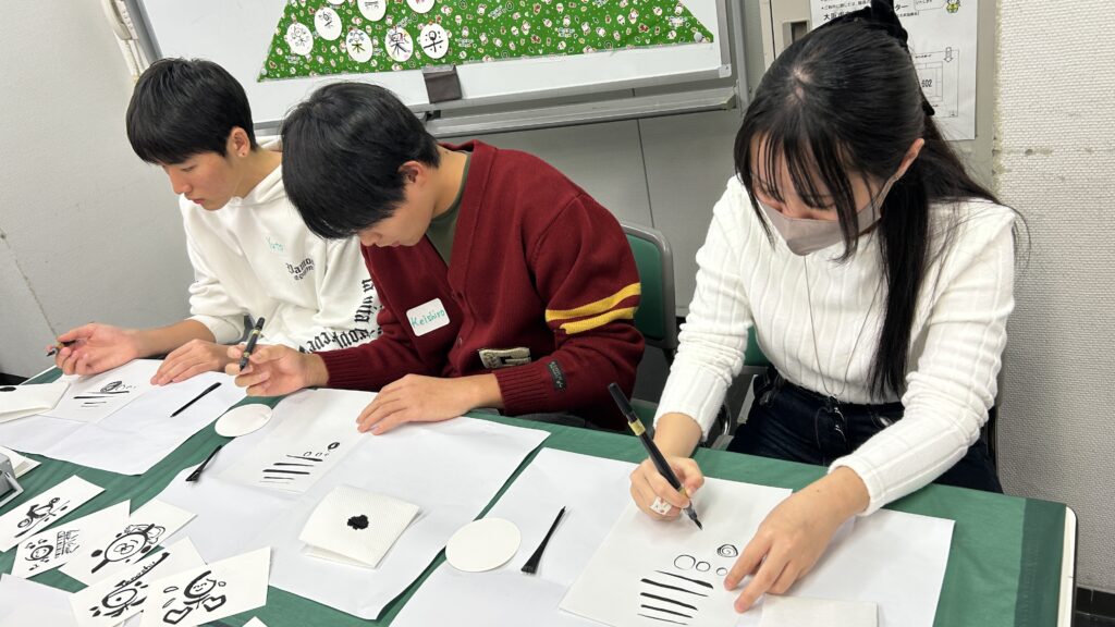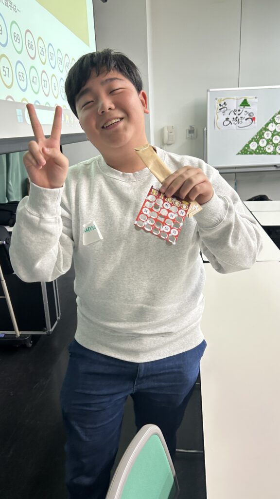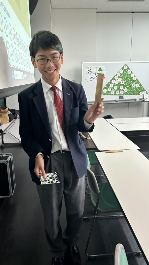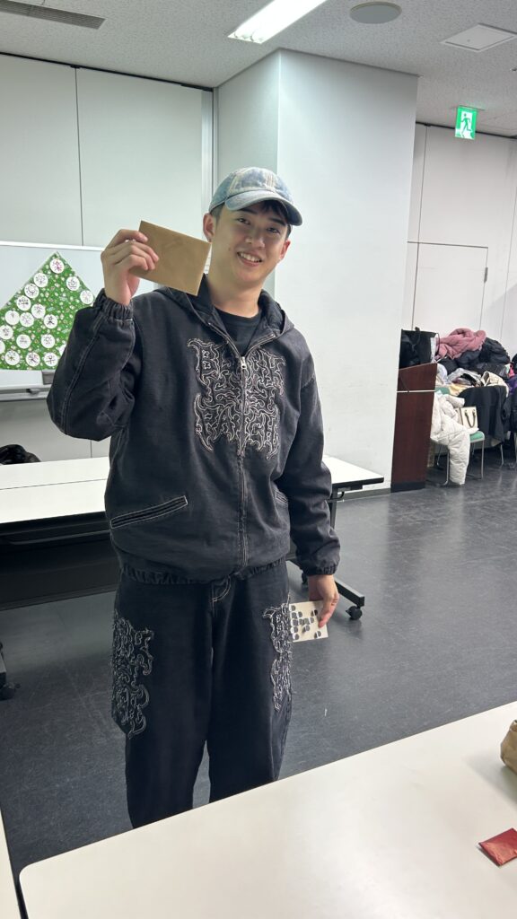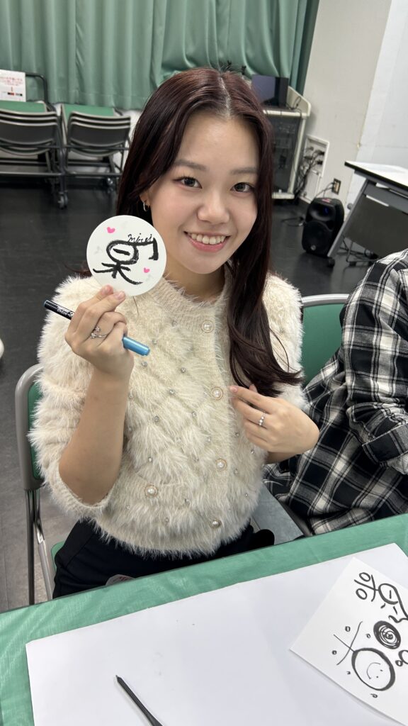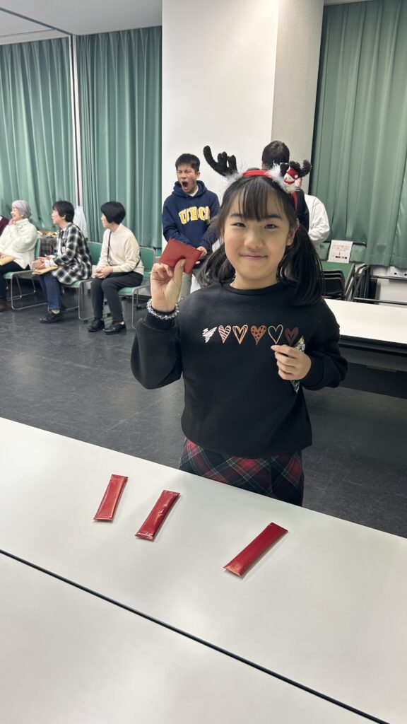 We welcomed a special guest teacher for 筆文字アート (Brush Letter Art), and enjoyed Christmas songs in English and German, accompanied by a 大正琴 teacher and player.